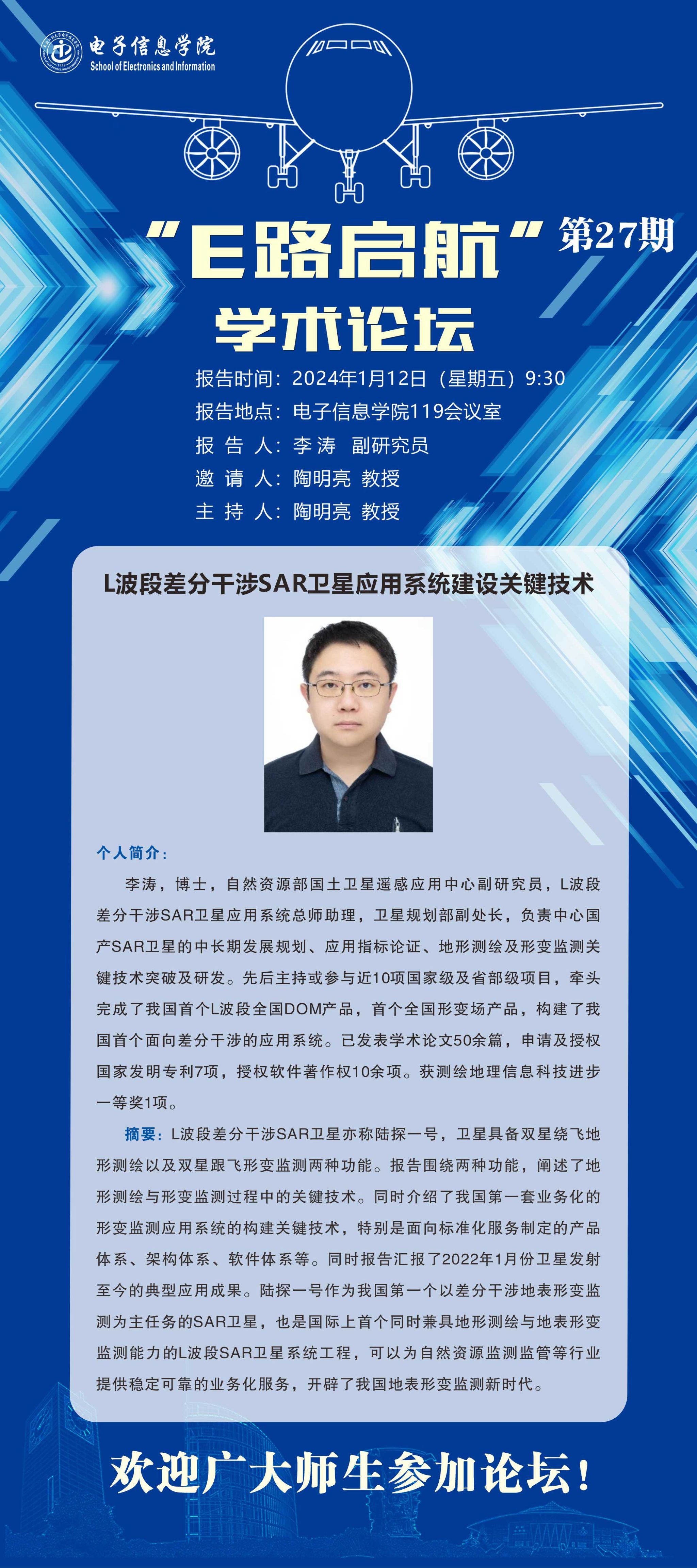 “E路启航”学术论坛第27期——L波段差分干涉SAR卫星应用系统建设关键技术