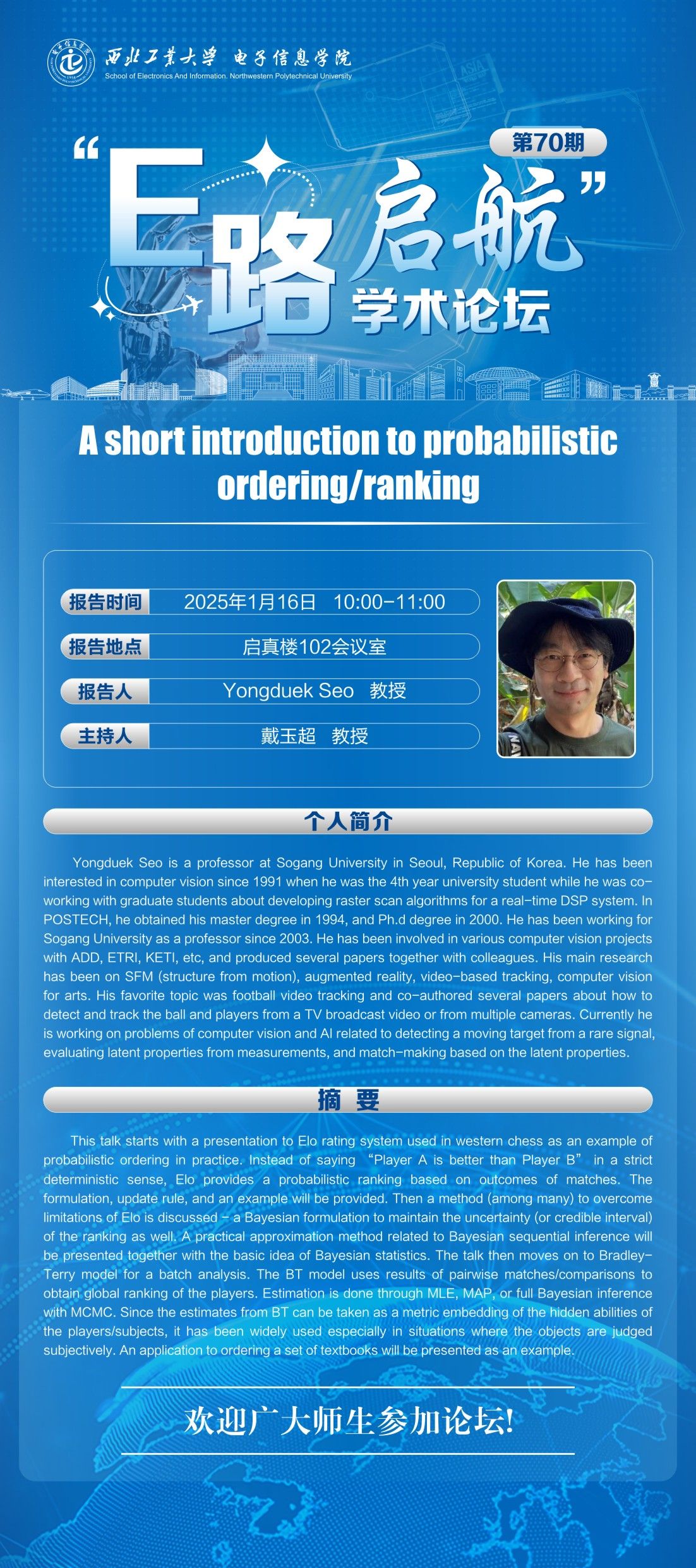 动漫在线 举行“E路启航”学术论坛第七十期-A short introduction to probabilistic ordering/ranking