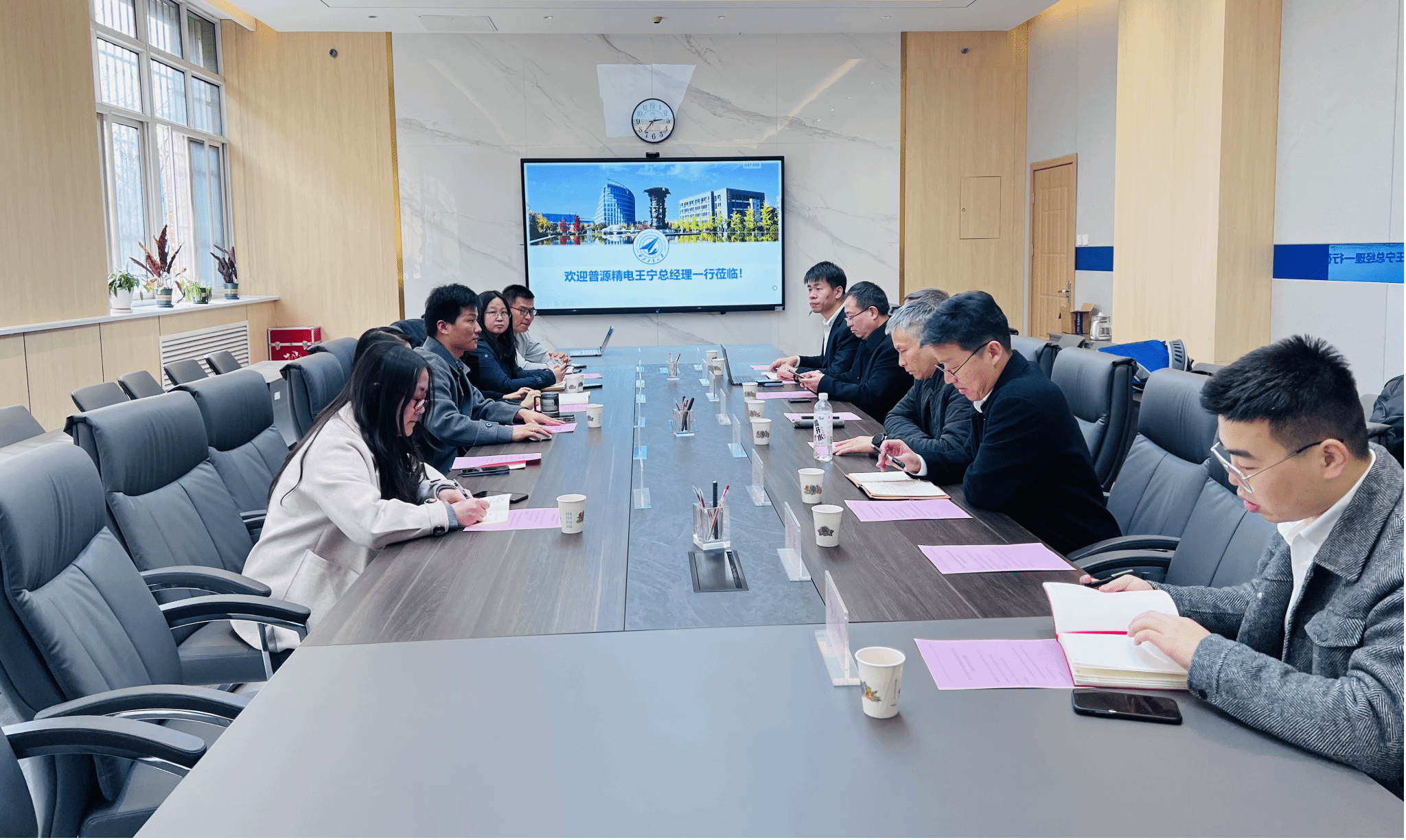楼119会议室举行校企合作交流会。普源精电董事兼总经理王宁、中国区总经理马军、教育计划经理江佳慧,动漫在线