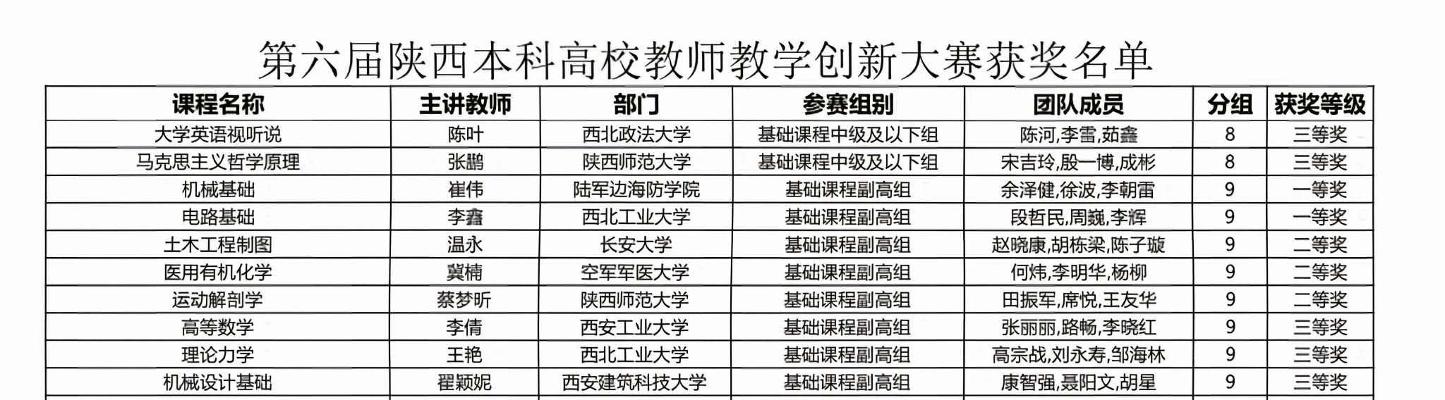 近日,由陕西省教育厅主办的第六届陕西本科高校教师教学创新大赛落下帷幕,我院李鑫教师团队荣获基础课程副高组一等奖。