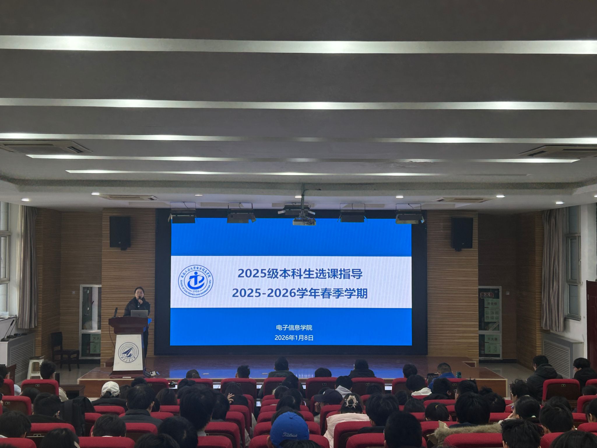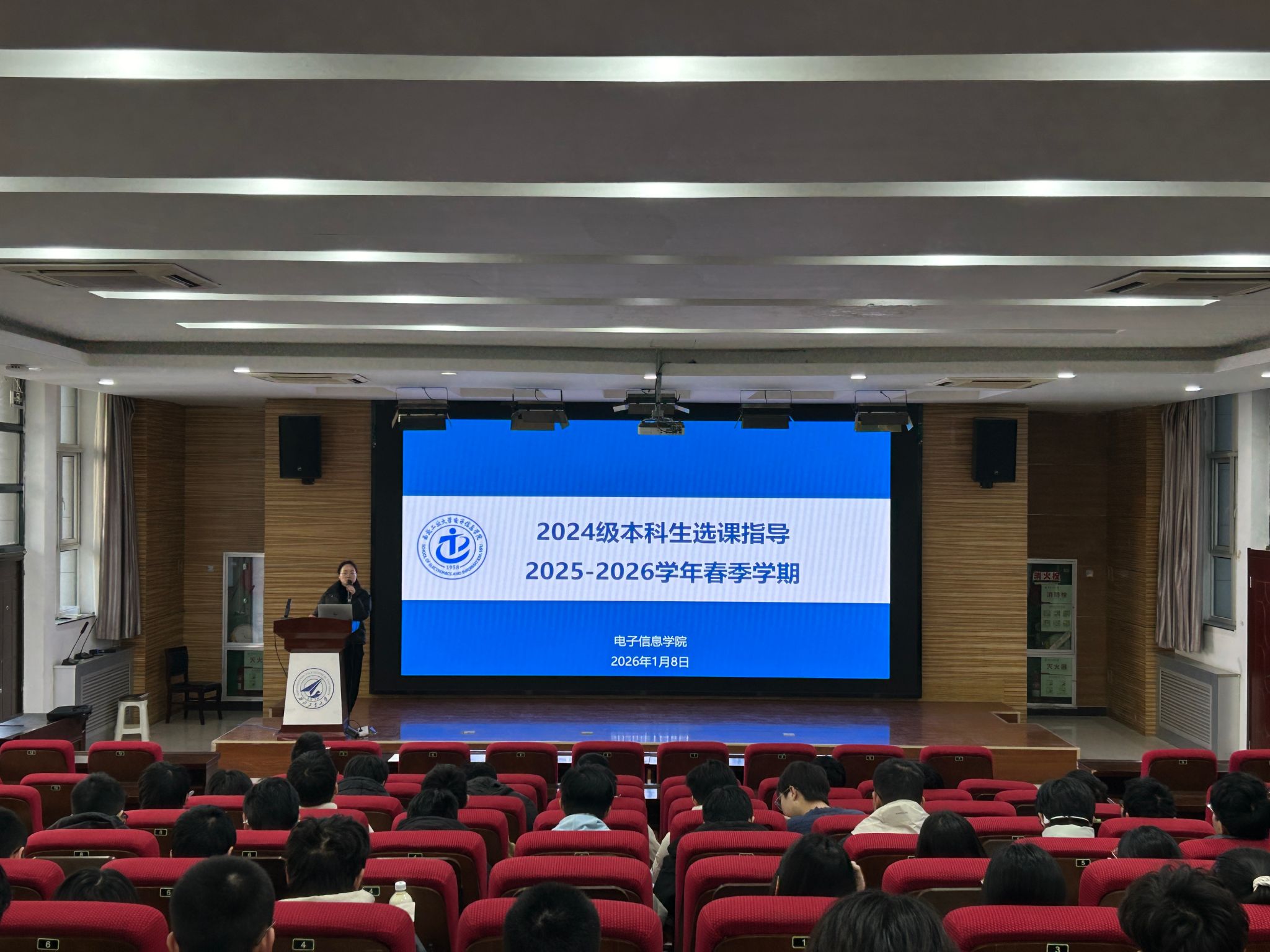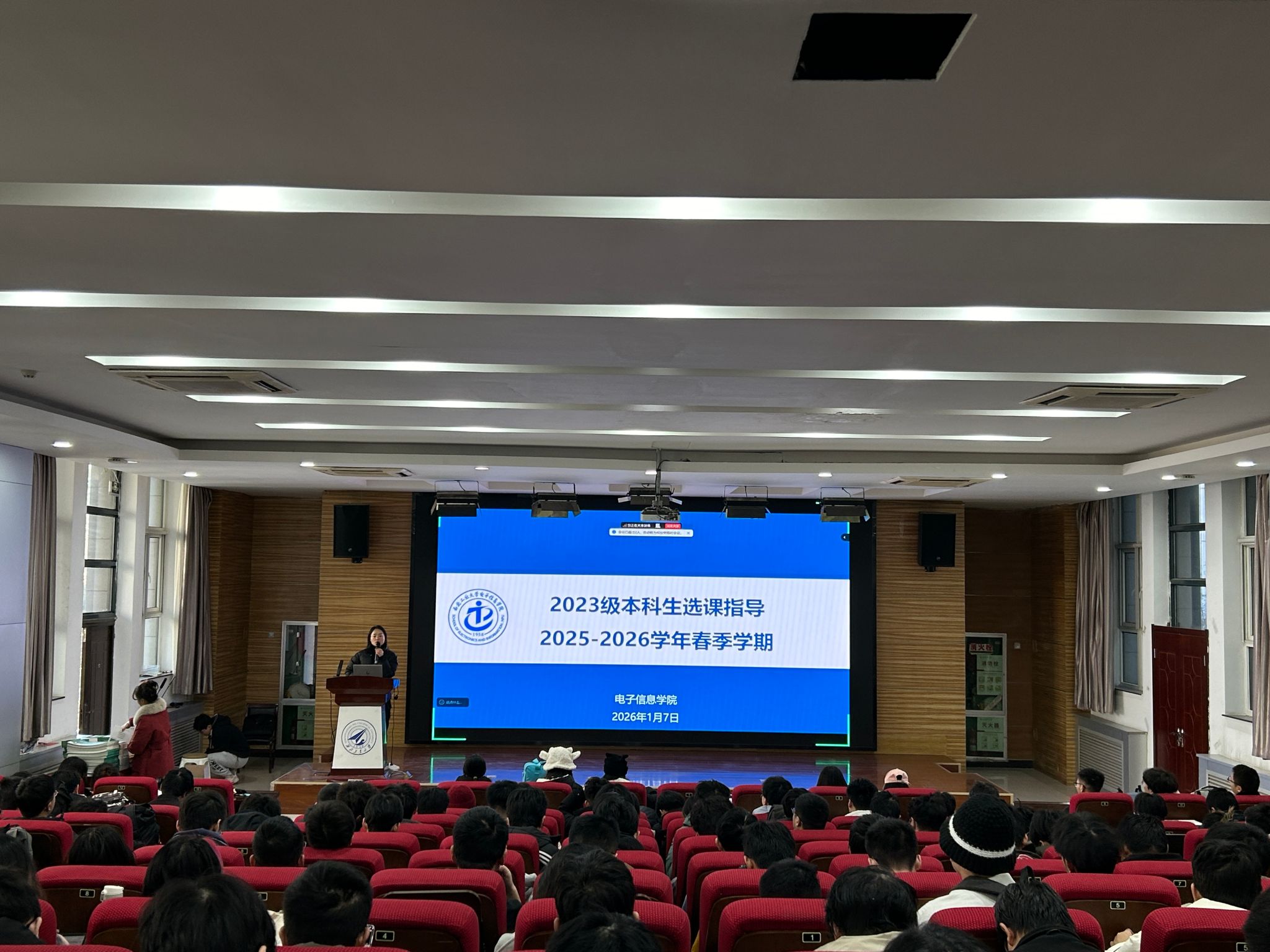 于1月7日-8日下午在自动化学院报告厅召开了2025-2026学年春季学期选课指导会。本次指导会由学院本科教学秘书杨瑾主持并讲解,2023级、2024级、2025级本科生参加会议。