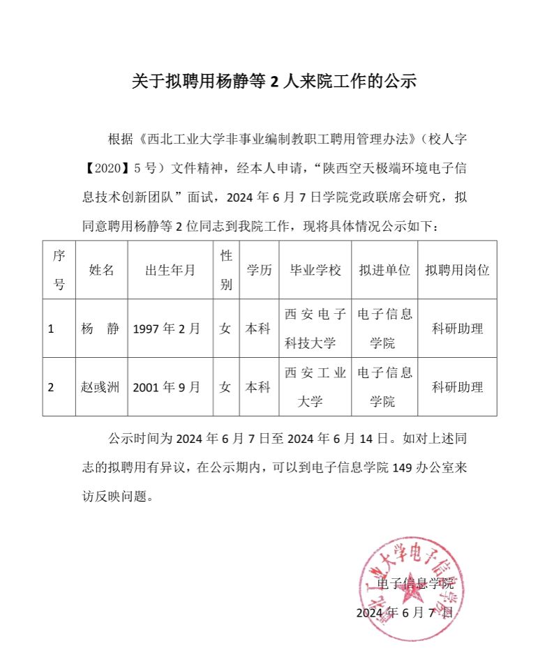 关于拟聘用杨静等2人来院工作的公示