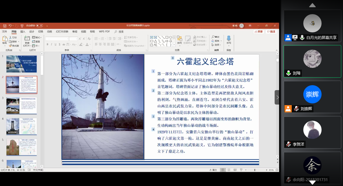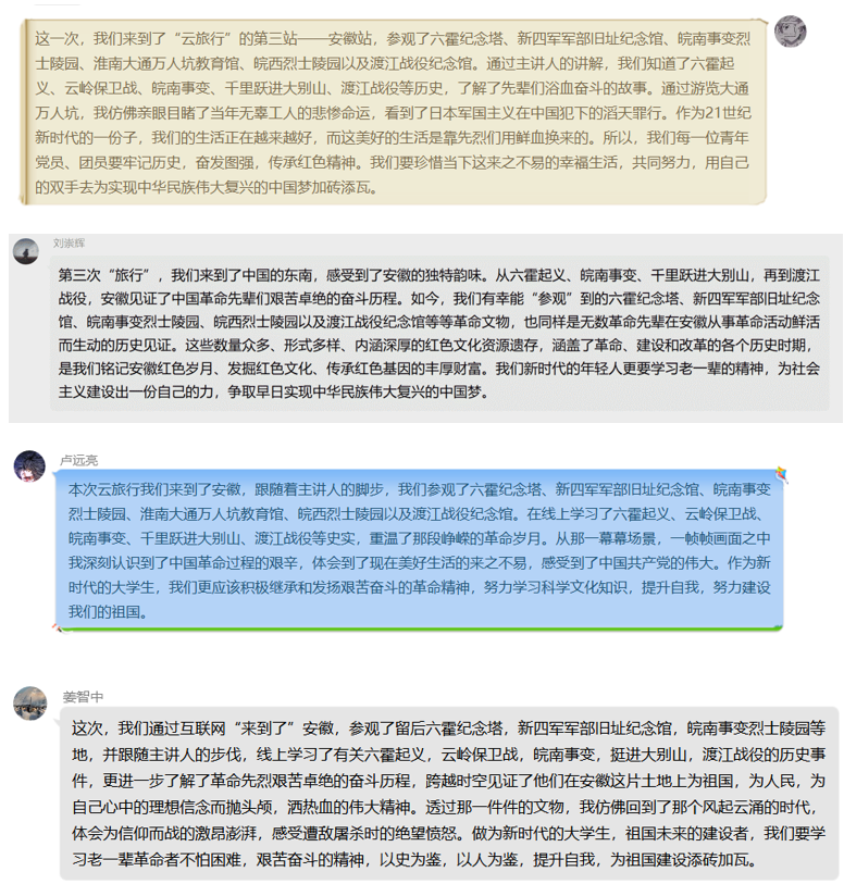 7月29日,“团员当导游”系列红色旅游实践进行到了第三站——安徽站。安徽自古以来便是人才辈出之地,也是“红色故土,改革之乡”。红色旧址遍布全省,贯穿中国革命和建设史全过程。这一次,由金涛同学担任导游,带领大家参观安徽省的革命遗迹。我们将追随历史的脚步,游览六霍纪念塔、新四军军部旧址纪念馆、皖南事变烈士陵园、淮南大通万人坑教育馆、皖西烈士陵园以及渡江战役纪念馆。
