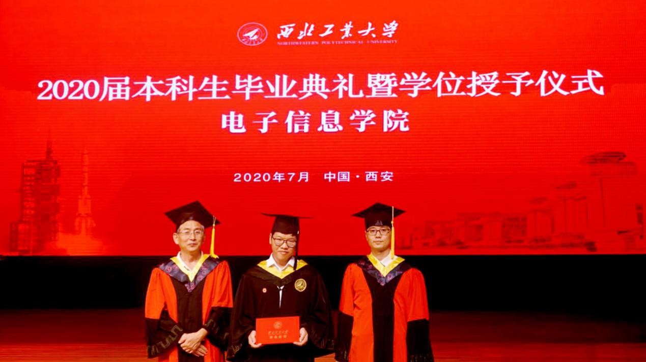 校歌》,歌声悠扬,字字铿锵。学院四位老师王伶、李建瀛、冯晓毅、周巍为同学们一个个拨穗、颁发毕业证、合影留念。