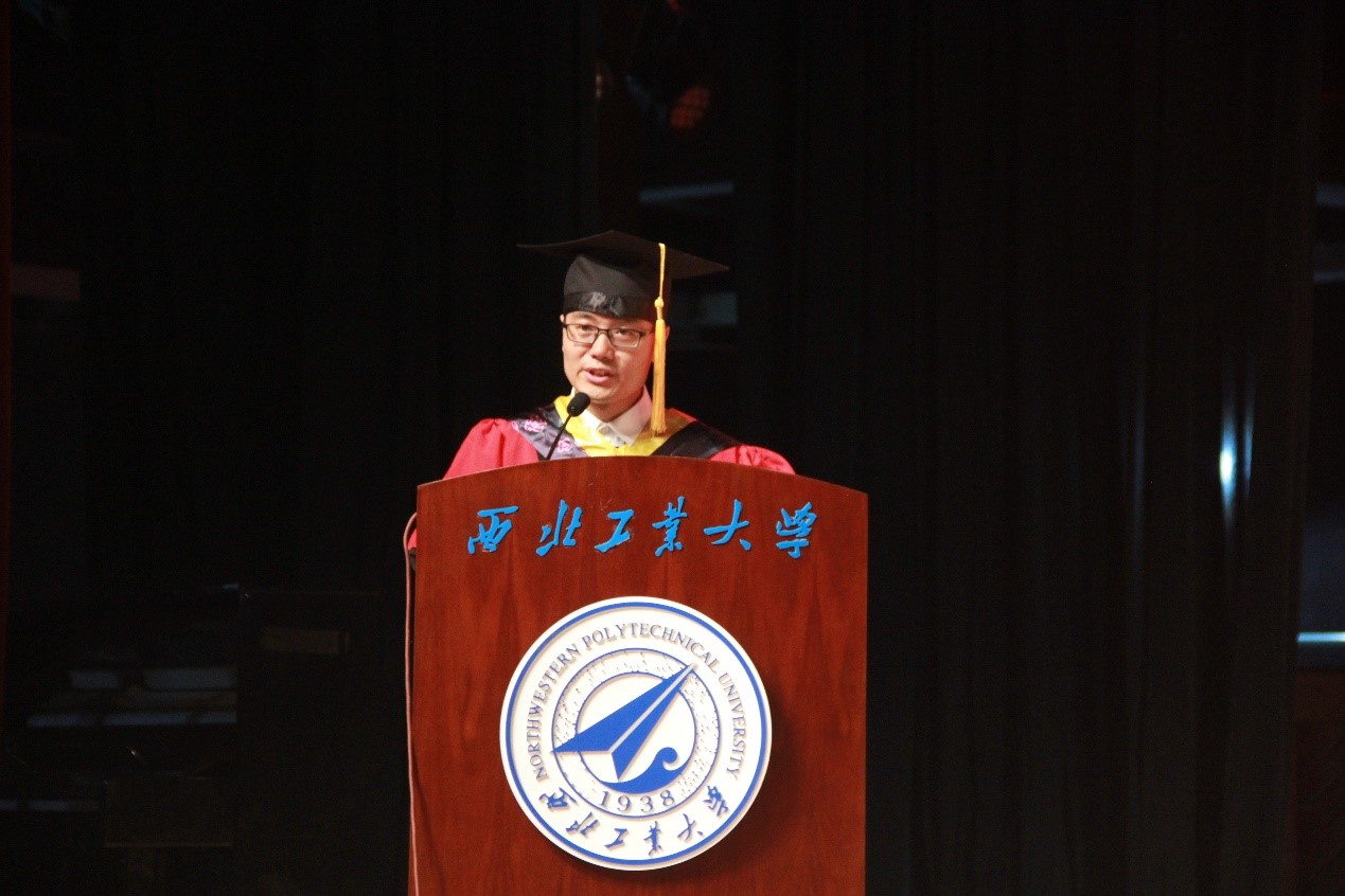 会场陆续播放了15个班主任的毕业寄语,希望同学们即使各奔东西,心里也永远念着工大栽培之情,每位老师的话语都引起了同学们的阵阵掌声。年级辅导员高永胜老师总结了年级同学四年里取得的优秀成绩,真诚为毕业生送上了祝福,勉励他们要做一个勇于拼搏、自强不息的人。