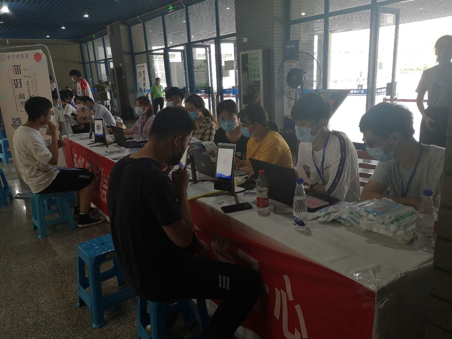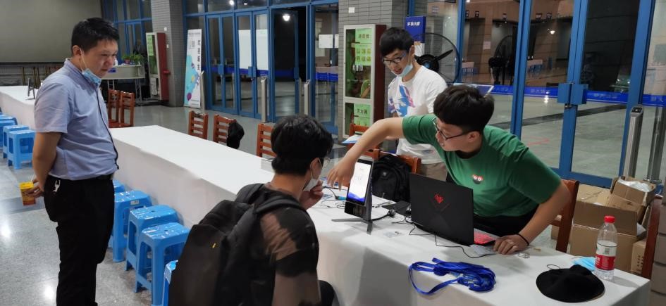 团委学生会主席杨炳南、副主席赵炎帮助最后一位新生完成报到。至此,2020年电子信息类本科迎新工作进入尾声,两日总共报到人数393人,目前还有6位同学还未报到,期待他们的到来!