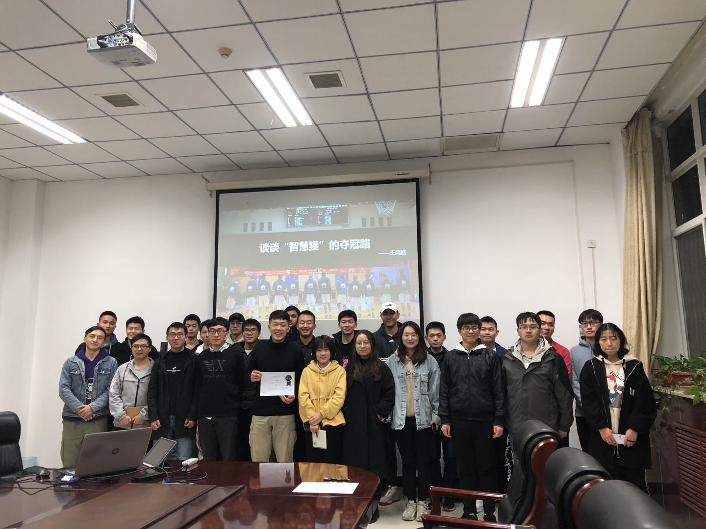 在本期微拓活动中,王昶皓同学作为西工大普通生篮球队“智慧猩”的队长,以《谈谈“智慧猩”的夺冠路》为主题,从其自身的比赛经历出发,分享了比赛过程中的感想与感悟,以及球队如何通过三年的时间,从陕西小组赛都无法出线,到最后拿到CUBA全国总冠军的一些心路历程。同学们认真聆听,深入交流。现场气氛十分热烈。大家纷纷表示,要学习王昶皓同学的先进事迹,在保证科研任务的同时,充分发挥自己的优势,挖掘自身潜能,多方位提高自己,做一个全面发展的新青年。