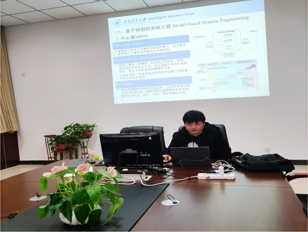 2020级博士研究生李珂以《浅谈MBSE在工程项目中的应用》为主题,结合自身科研经历,分享了对MBSE的理解,以及如何在工程项目中发挥其作用。李珂从其定义出发,讲解了什么是系统、什么是系统过程,进一步阐述到什么是MBSE(Model-based System Engineering);分析了MBSE能够用来干什么,以及这一技术的优势。李珂结合自己团队的项目经验,介绍了如何利用MBSE进行建模。整场分享“干货满满”,使参会者生动了解了建模的整个流程,开拓了大家视野,启发了大家的思路。在座同学纷纷表示收获颇多,对其深入浅出的讲解报以热烈掌声。