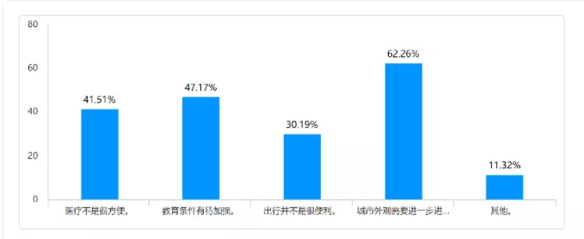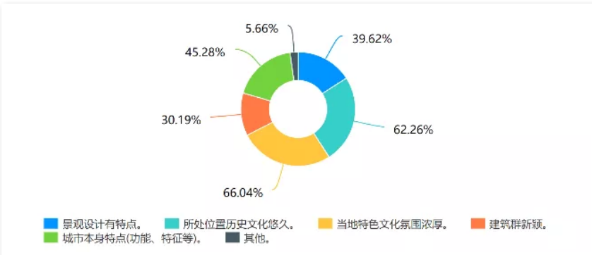 问卷涉及城市交通的便利性、教育条件的优越性、医疗环境的便捷性、标志建筑的文化性,以及城市景色的美观性等方面。实践队通过发放、回收来自不同地区的线上问卷,发现群众对于现阶段城市各方面发展的认可度及满意度很高,但是随着物质生活水平的提升,其对于城市美好风貌的建设需求也逐步增加,尤其是更加关注本地区的标志性建筑的特色以及所具备的文化底蕴。队员们根据这一发现,重点开展了有关各地的城市建筑环境变化的相关调研。