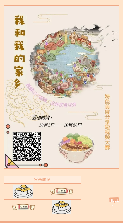 学生九州美食文化协会联合承办的“我和我的家乡”特色美食分享短视频大赛十月份在线上开展。该活动希望同学们可以在视频中展现出各地的特色,传递每个地区的美食文化!