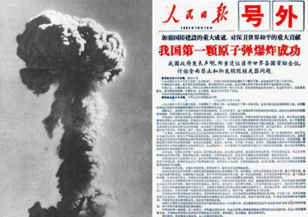 1964年10月16日15时,中国第一颗原子弹在新疆罗布泊爆炸成功,向世界传递出中国的声音。