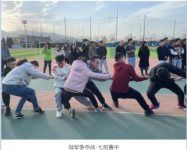 研究生会于11月21日下午在星天苑操场举办了学院2021级研究生“迎新杯”拔河比赛。经过三轮激烈角逐,七班获得了此次比赛的冠军,六班、三班分别获得亚军、季军。