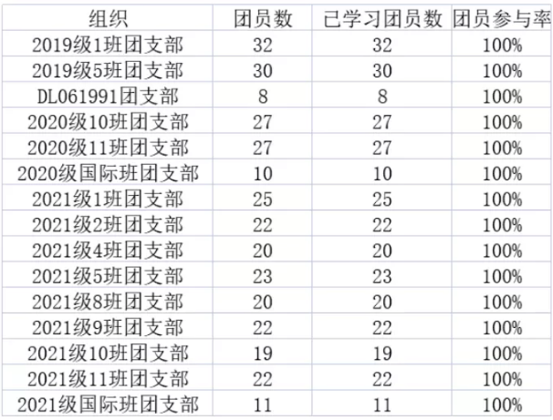 尽管总体学习情况较好,但是本次青年大学习中仍出现了部分团支部学习参与率不高的情况,部分团支部完成率低于20%!希望2018级08061809班团支部、研究生19208-1团支部、研究生19208-2团支部、研究生19208-3团支部、研究生19208-4团支部、研究生19208-6团支部在之后的学习中能够再提高一些学习积极性,按要求落实学习。