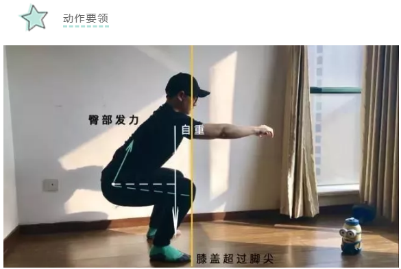他分享的动作是自重深蹲。