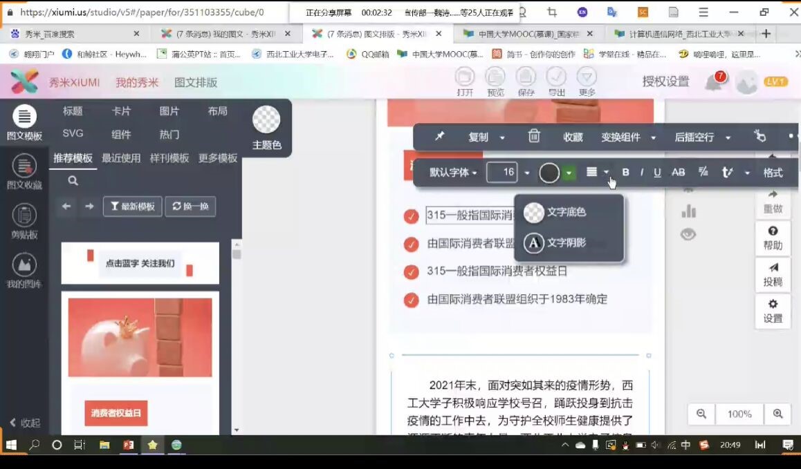 接着,志愿队团支书徐健凯为大家进行进行推文撰写的培训。徐健凯着重介绍了与推文撰写相关的知识和注意事项,并现场通过屏幕共享向各成员作以示范,帮助同学们更好的掌握推文撰写的技巧。