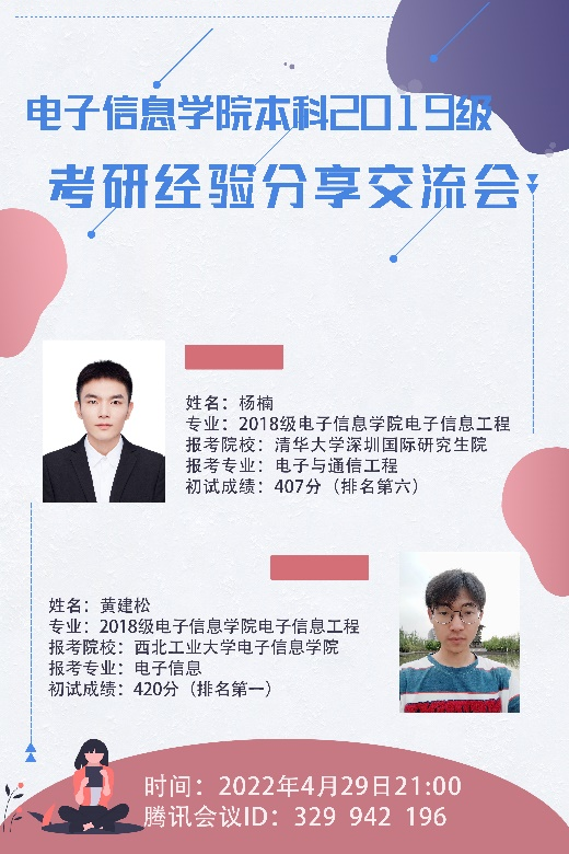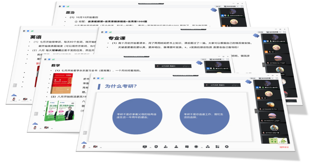 本科2019级于线上举办考研经验分享会。本次会议由本科2019级辅导员张欣老师主持,本科2018级黄建松、杨楠两位同学分别就自身的考研实战经验和心得体会进行了分享交流。