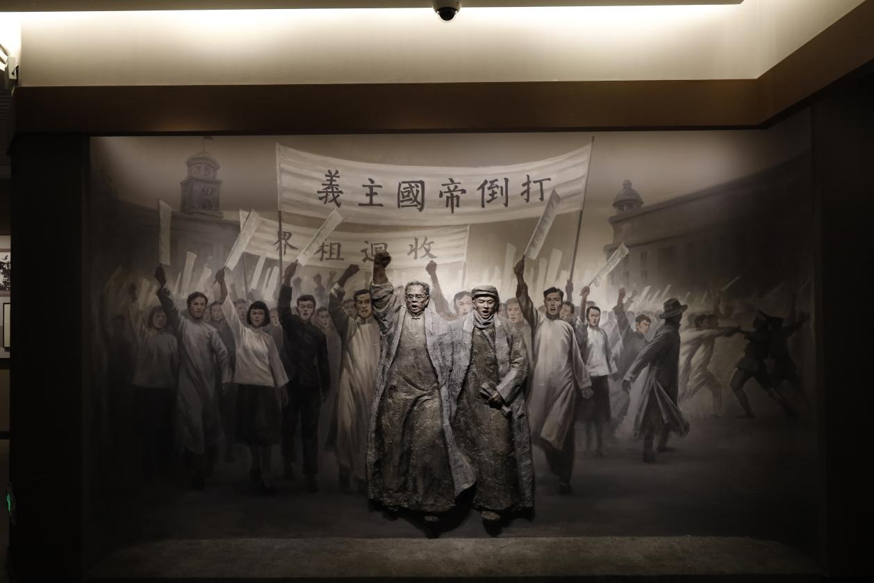 图|青年学生参加反帝国主义游行浮雕画像