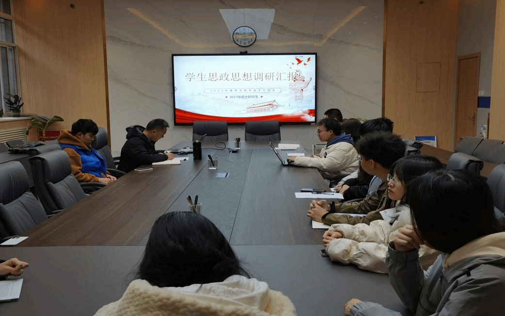 为进一步提升2021级硕士研究生的思想政治教育成效,掌握学生学习生活状态,结合学校学生思想调研工作,3月16日上午,辅导员范西昆召集各班班长在学院楼119会议室召开了2023年春季学期学生思想动态调研座谈会。