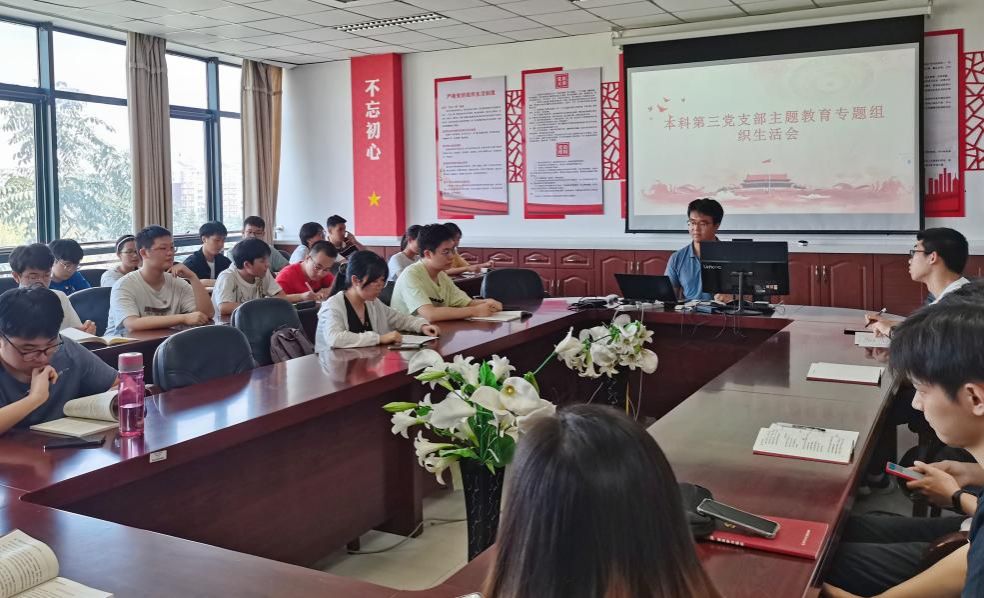 本科第三党支部在学院楼432会议室召开学习贯彻习近平新时代中国特色社会主义思想主题教育专题组织生活会,学院党委副书记高敏出席并指导此次会议。会议由支部副书记陈学润主持,支部全体党员参加会议。