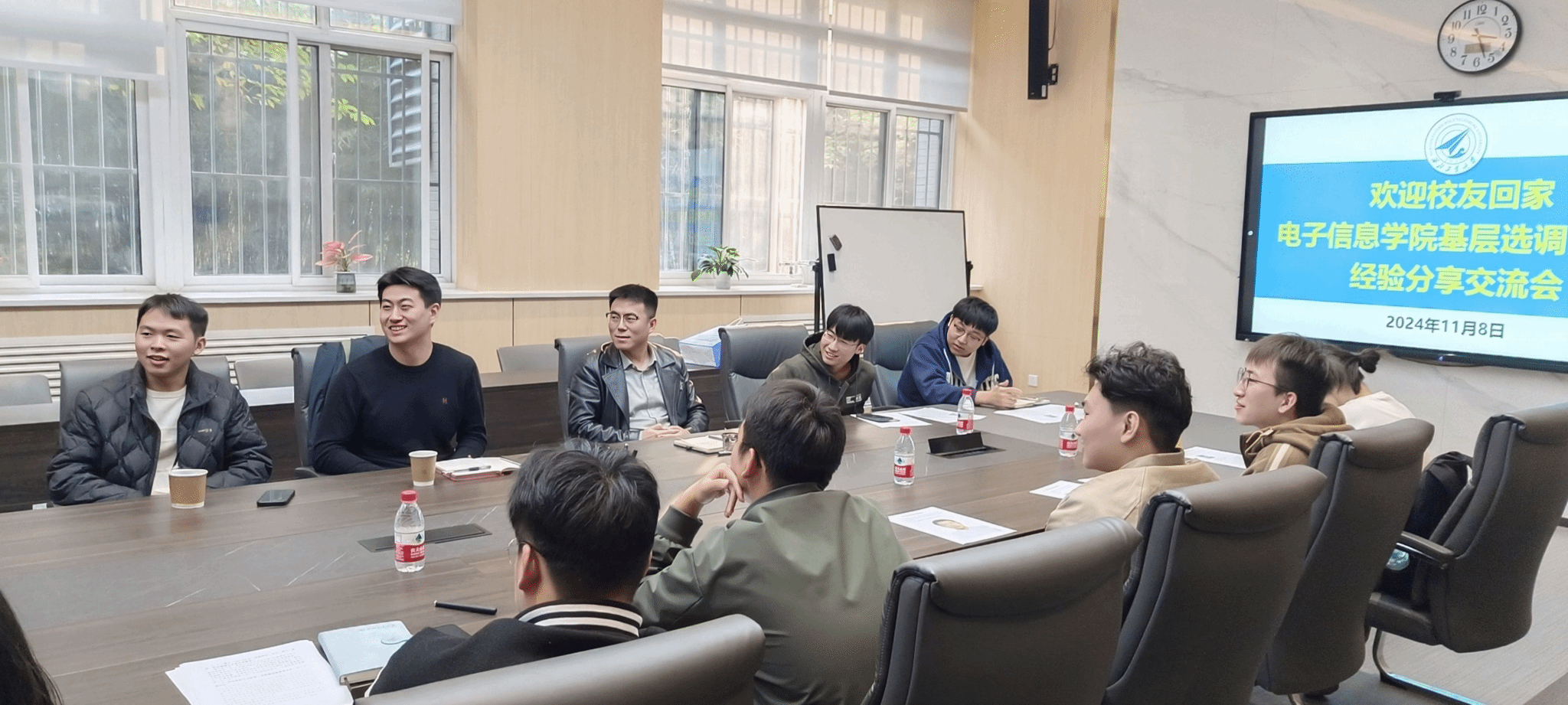 活动伊始,王强代表学院热烈欢迎院友回家,向与会学生介绍了本次活动的背景和情况。徐源皓院友是2017级电子信息工程专业本科生,2021年毕业后作为广东定向选调生回到深圳工作,现就职于广东省深圳市盐田区沙头角街道办事处,任沙头角街道团工委委员、街道综合行政执法队一级行政执法员,曾作为选调生担任沙头角街道桥东社区居委会主任助理。何飞龙院友是2020级通信工程专业本科生,2024年参加贵州省定向选调招考,成功获得某单位公务员岗位及贵州现代物流集团国企岗位的录用资格,选择加入贵州现代物流集团,担任国企岗位。两位院友就自己的职业选择、个人规划、工作经历和工作感悟跟在座师生进行了热烈的交流。