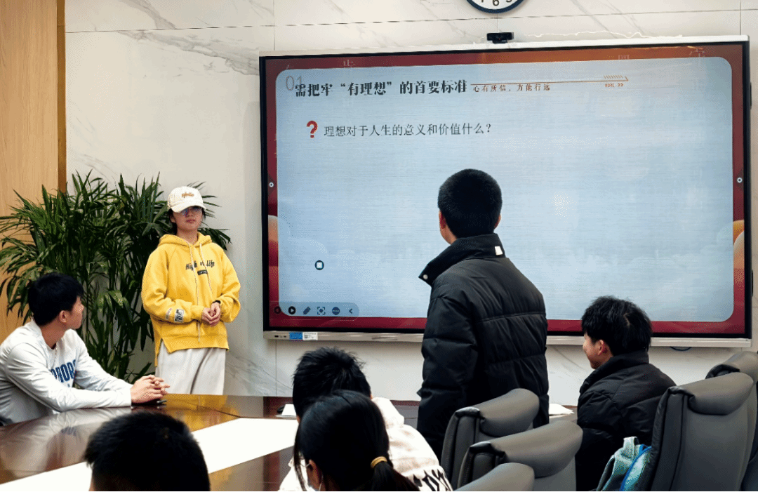 活动主讲人杨欣妍从把牢“有理想”的首要标准、突出“敢担当”的时代要求、锤炼“能吃苦”的坚毅品格、弘扬“肯奋斗”的光荣传统四个方面阐述了青年人应如何在新时代有所作为。通过此次团日活动,社团成员深刻认识了青年人肩上的担当与使命,明确目标以提升自己的核心竞争力,共赴时代筑梦路。