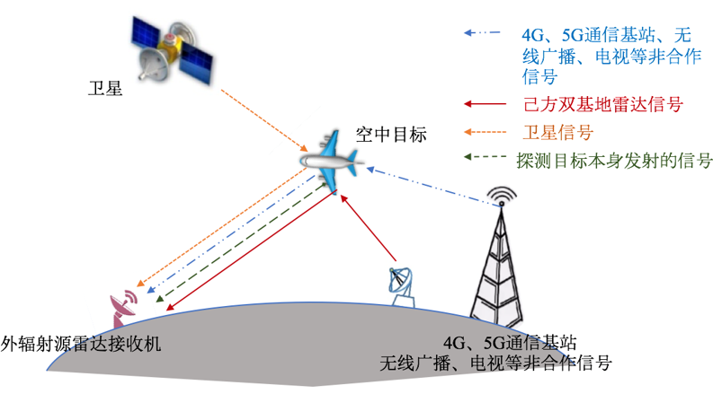 外辐射源雷达(亦称无源雷达)利用环境中广泛存在的第三方无线电信号探测目标,可方便构建双基地或多基地探测系统。该种雷达探测系统自身不辐射电磁波、不占用额外频率,是一种电磁隐蔽、收发分置的新体制雷达,这在频谱资源日益紧张的电磁空间具有极大的竞争优势和实用价值,可应用在反无人机监视、通用航空低空空管、大型活动反恐安保、国土要地防空等诸多军事和民用领域。