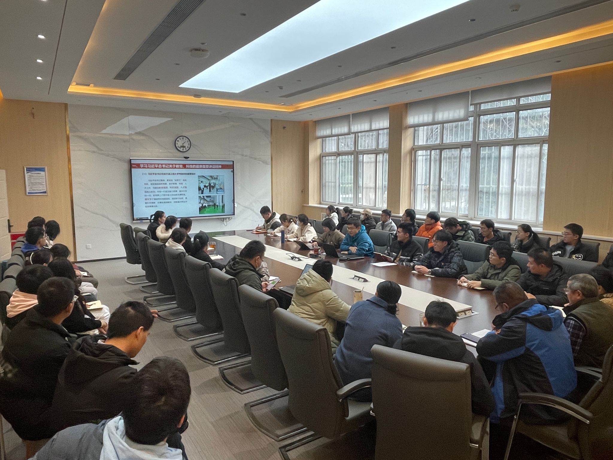 党委书记侯俊以“知校史 明校情 用党的创新理论引领学院高质量发展”为题,通过线上线下相结合形式,为所联系党支部及学院新入职青年教师共90余人讲授党课。