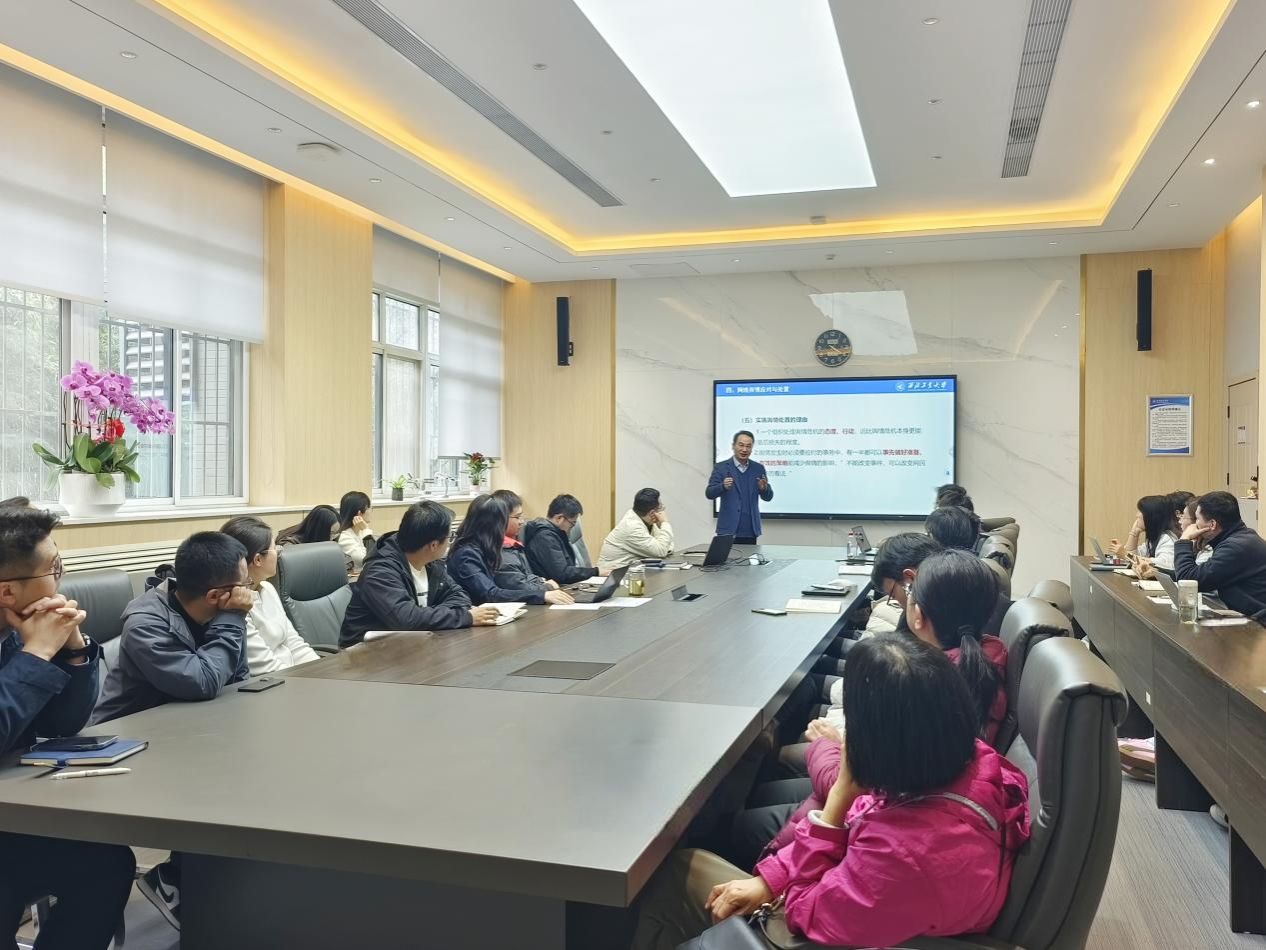 特邀校党委宣传部副部长马西平作高校网络舆情风险研判与应对专题培训。学院党委理论学习中心组成员、教师党员代表、辅导员以及院办教职工等30余人参会。培训会由学院党委副书记高敏主持。