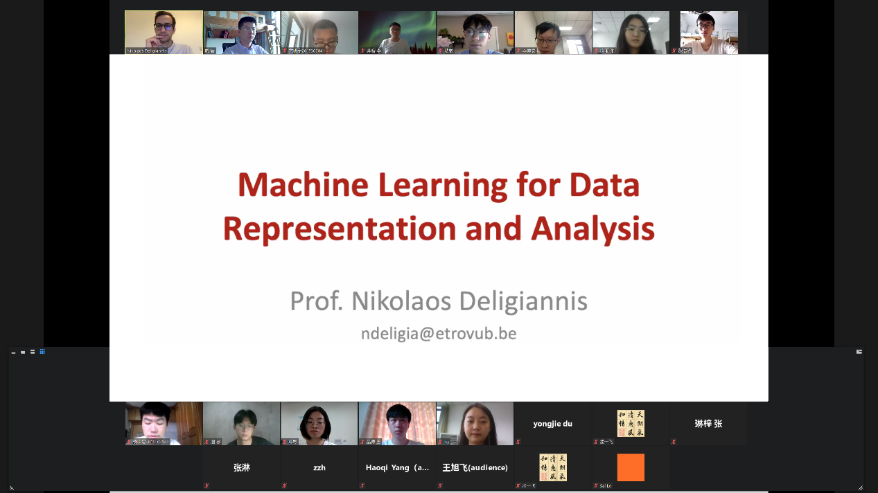 唐晓副教授邀请,比利时布鲁塞尔自由大学(Vrije Universiteit Brussel,VUB)的Nikolaos Deligiannis副教授在本年度的暑期学堂活动中,开设课程“Machine Learning for Data Representation and Analysis”。课程为期两周,使用zoom平台在线进行。课程内容涵盖了机器学习领域中的主要议题,以及其现代数据分析领域中的应用。