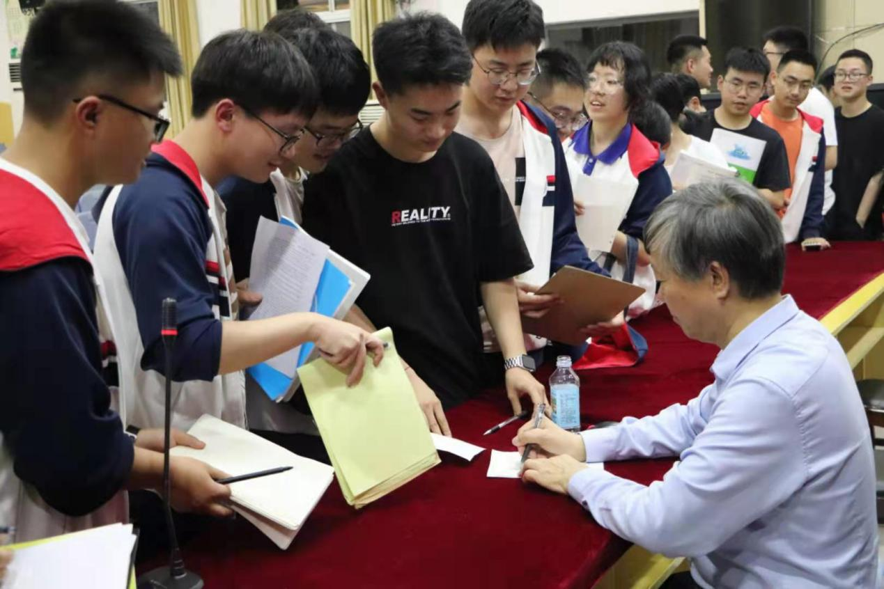 绵阳中学实验学校的报告会后,同学们排起长队,纷纷请何明一教授签名留念。该校新闻报道赞誉称:“动漫在线