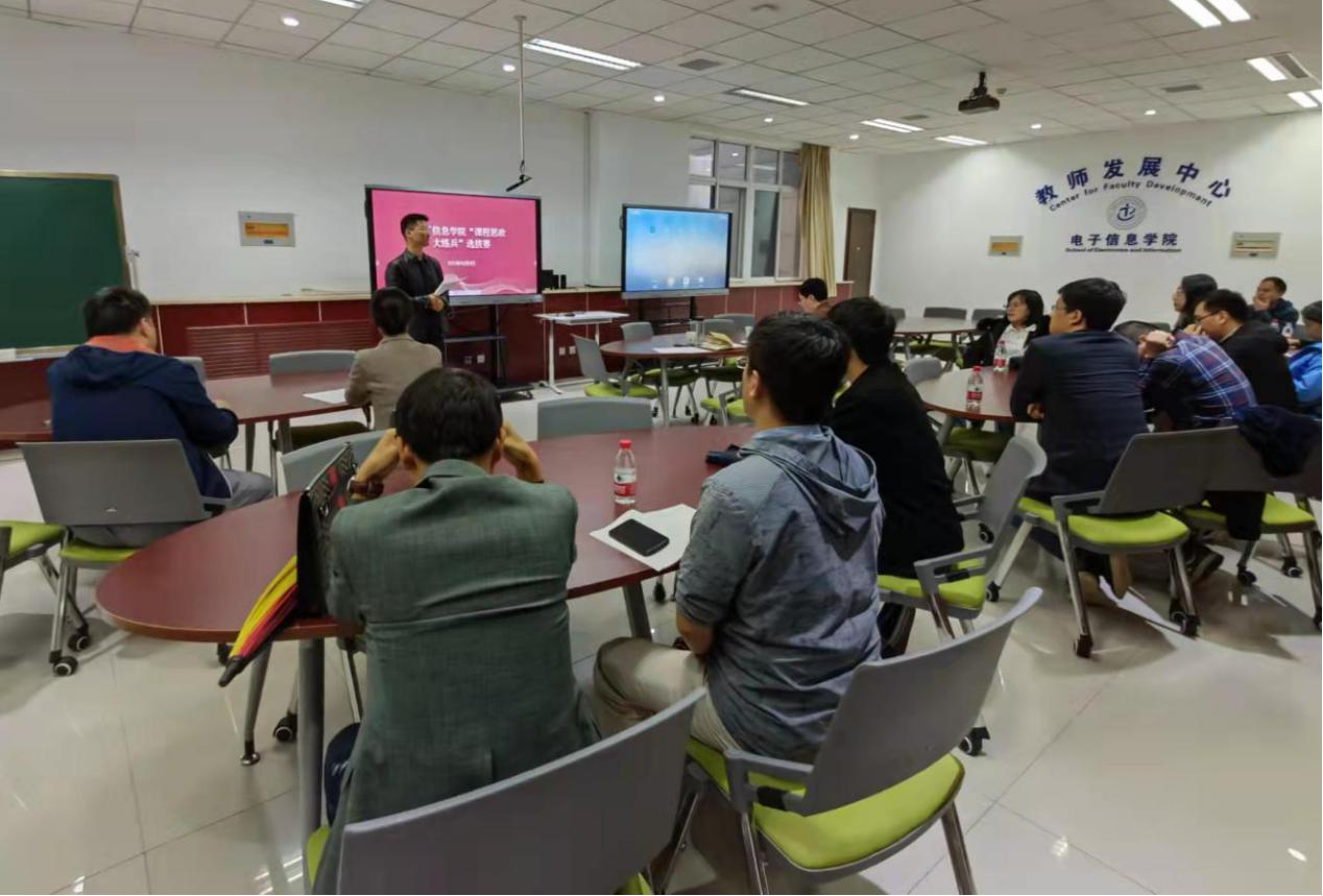 其他教师也从自己的专业领域出发,在教授专业知识的同时,对学生进行价值引领,帮助学生树立正确的世界观、价值观和人生观。张会生、丁君、尹熙鹏三位评委分别就每个老师的课程思政教学情况逐一进行点评,指出课程思政建设要与一流课程建设有机统一,在讲授好专业知识的同时把丰富的思政元素巧妙融入教学过程,如糖融水、如盐入味,让专业课程更有味道,达到育人“润物细无声”的效果。