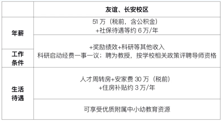 友谊、长安校区待遇: