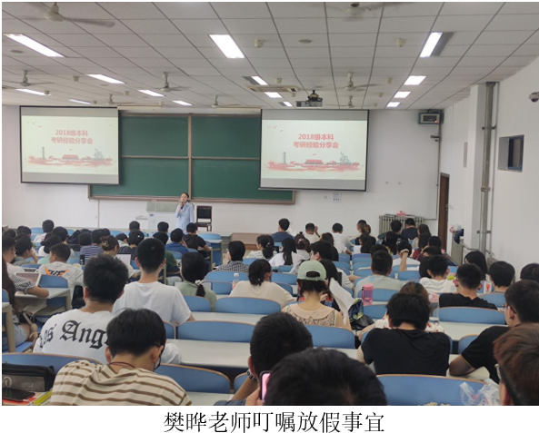 本科2018级在教学西楼D202召开了本科考研经验分享暨安全教育的主题班会,全体学生参加了会议,F1岗辅导员樊晔主持会议并讲话。