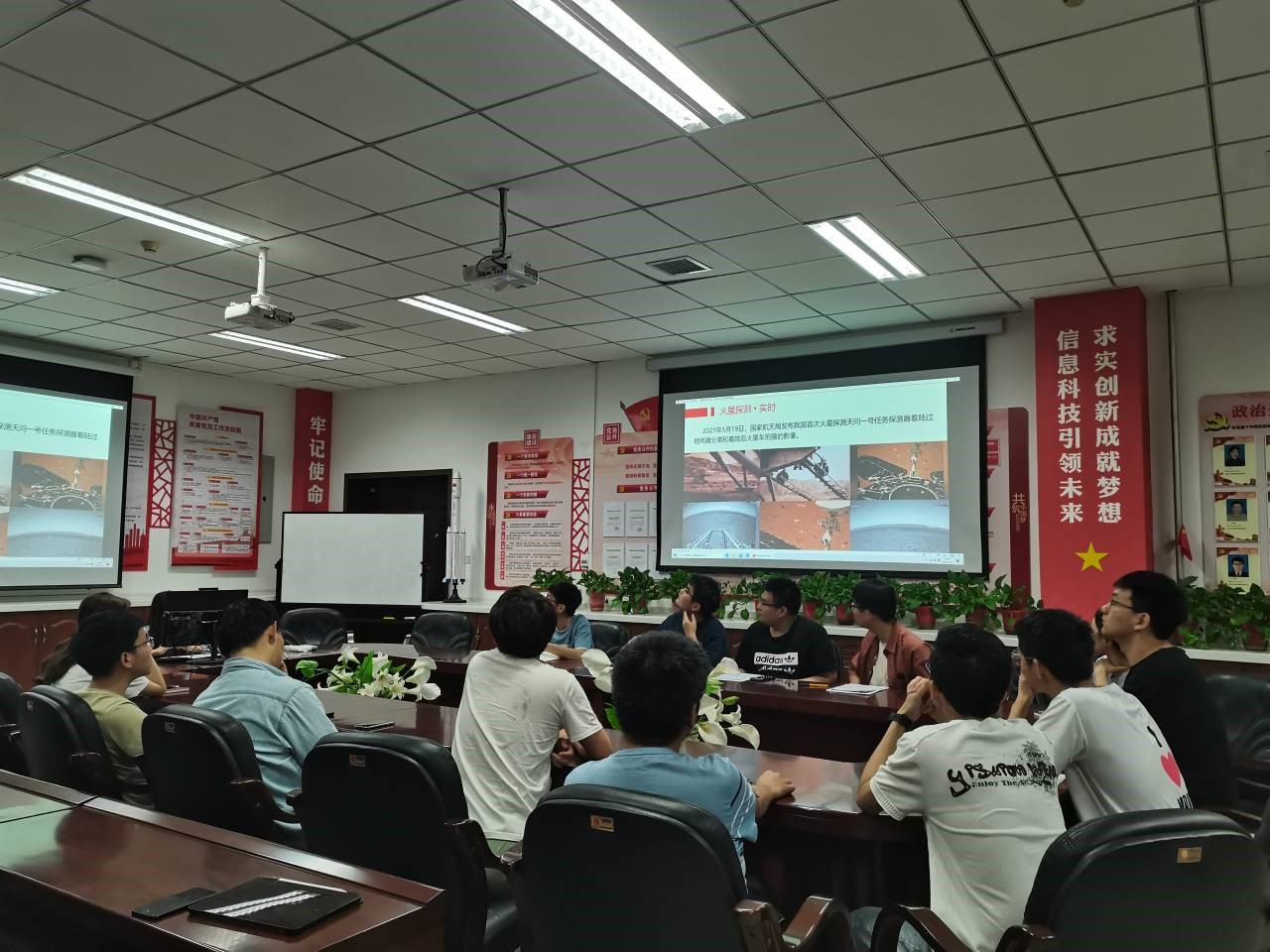 5月15日,天问一号探测器成功着陆火星乌托邦平原南部预选着陆区,我国首次火星探测任务取得圆满成功。支部对当日相关新闻进行学习和讨论。万紫嫣同志从火星探测的实时新闻、火星探测究竟有多困难、火星探测背后的那些航天人三个部分做汇报分享,带领大家共同学习火星探测的相关内容。