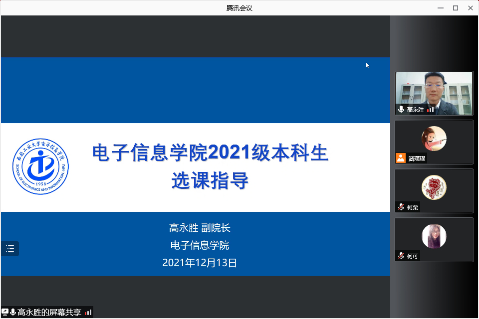宣讲会上,学院副院长高永胜从各年级的培养方案出发,为同学们解读培养方案中通识通修、学科专业、专业方向等模块的课程组成,着重为同学们讲解2021-2022年春季学期指导性教学计划,提醒同学们提前做好课程规划,使同学们对电子信息类的培养方案、选课方法及学习进程有了完整的了解,并针对同学们反馈的问题进行了专业的解答和指导。