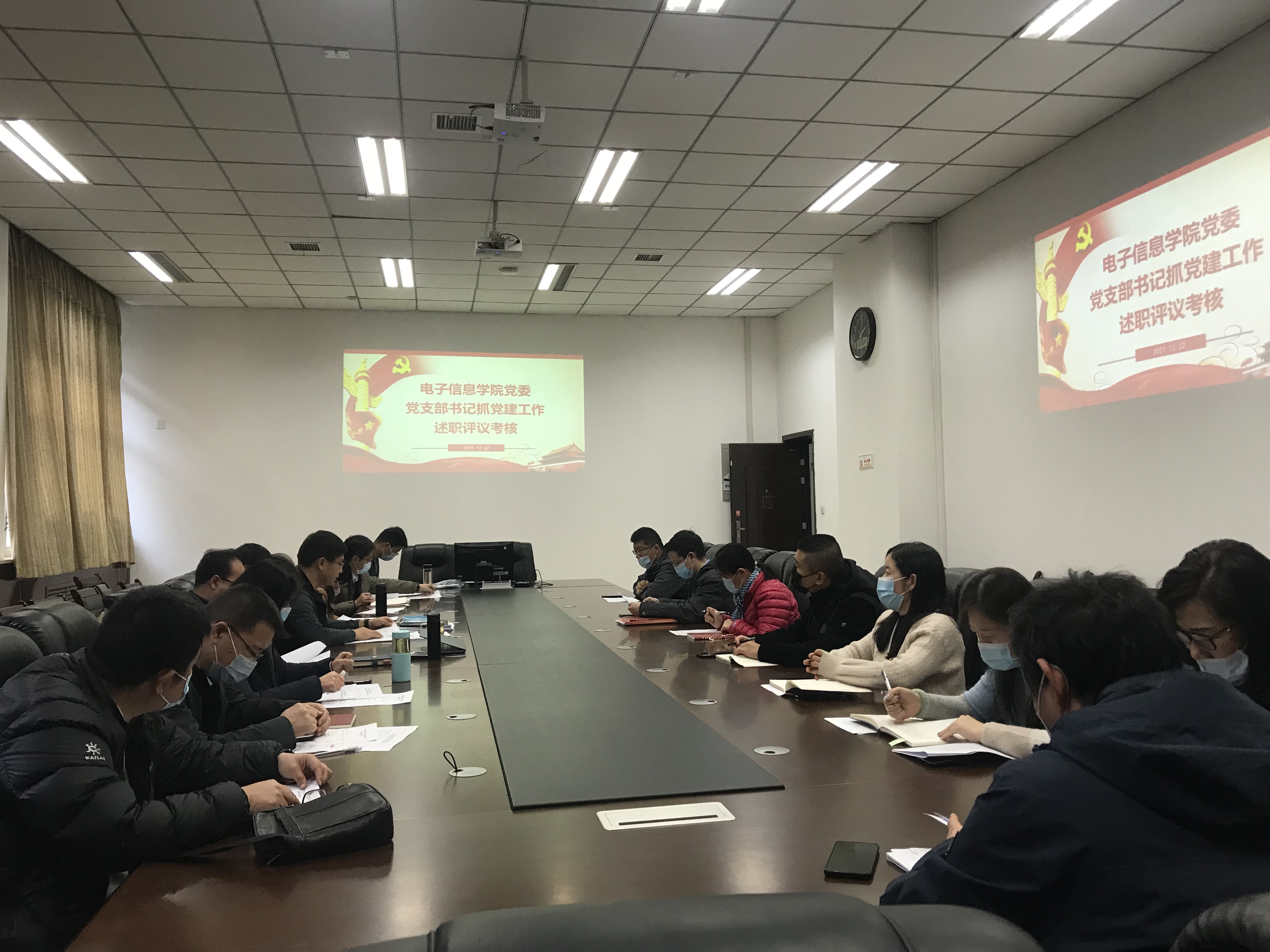 在学院楼119会议室召开2021年度教工党支部书记抓党建工作述职评议考核大会。评审组由学院党委委员、领导班子成员、教授代表等组成。全体教工党支部书记参加了会议。会议由学院党委书记侯俊主持。