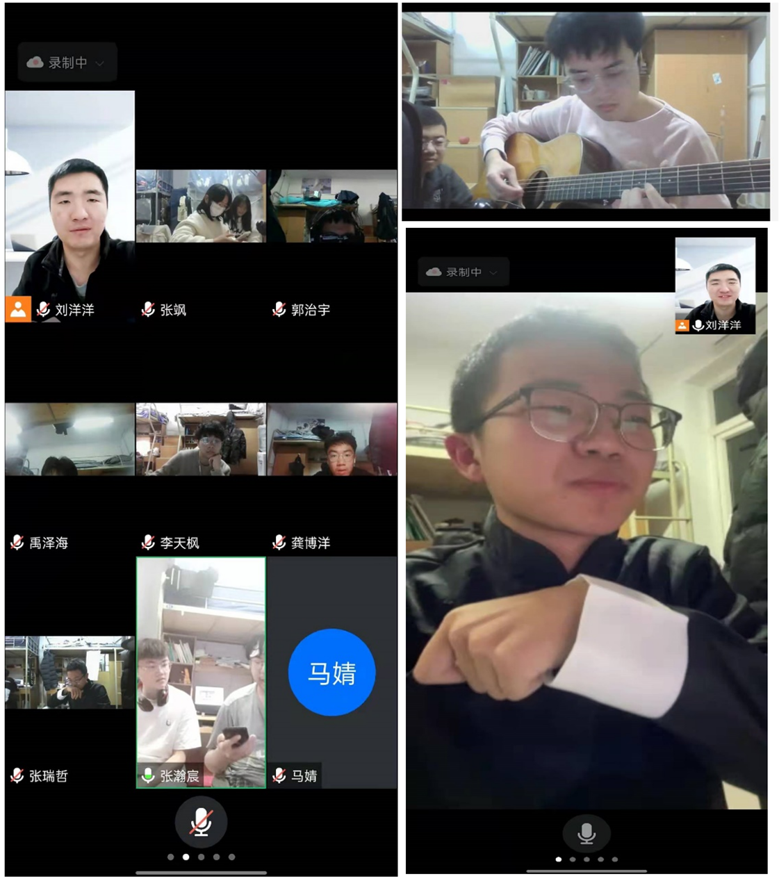 还有那些班主任、辅导员老师,为了丰富同学们在疫情期间的生活,与班级同学开展特色的“云端”迎新年活动,同学们相互分享了在校的收获和各自的奋斗目标,展现了拿手的才艺,有幽默笑话、吉他弹奏、相声、猜谜、魔术等,线上活动丰富有趣,嬉笑畅言,插科打诨,皆为真情。
