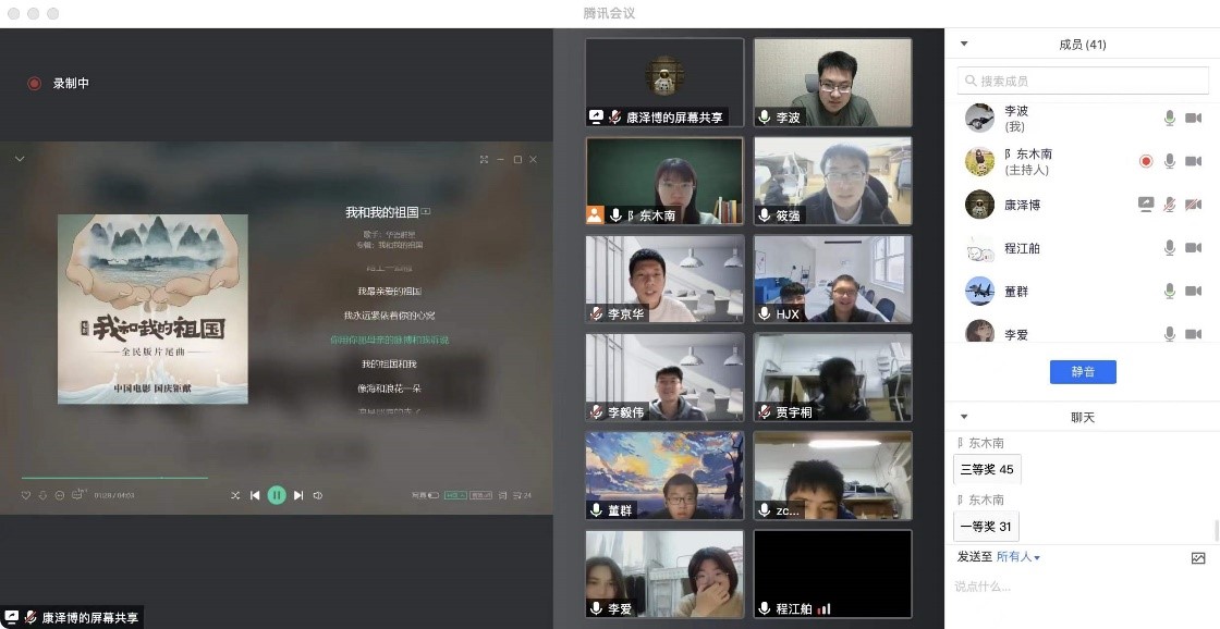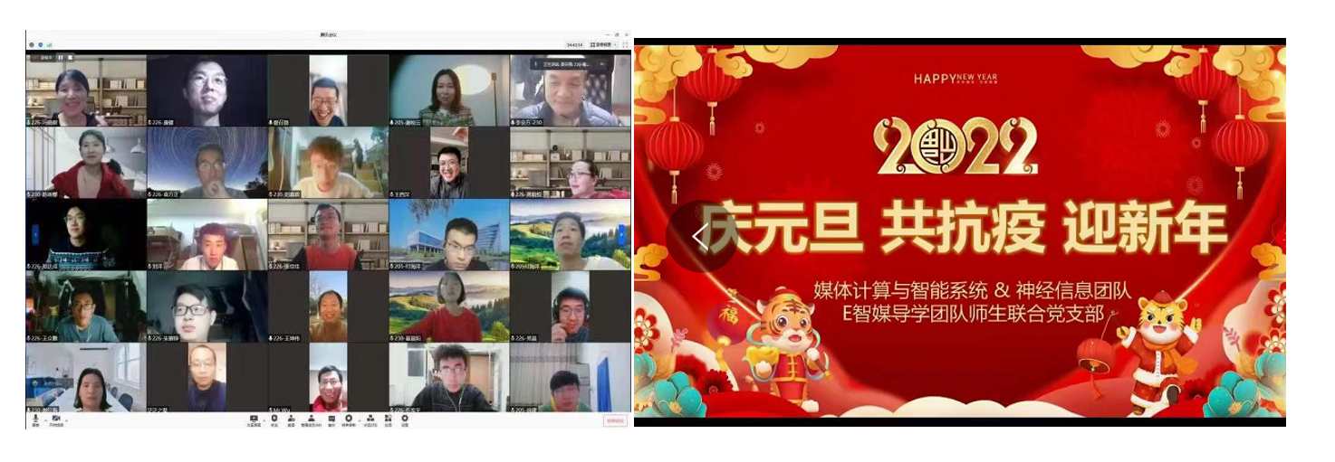 E智媒党支部、MUCIS和NI团队联合开展的“云”跨年活动在一曲《新年好》钢琴演奏中拉开序幕。谢松云老师献歌《朋友干杯》,冯晓毅老师带领大家合唱《明天会更好》,李会方老师为大家送上真诚的祝福,大家或弹、或唱或送祝福,中间还穿插很多的趣味游戏,令跨年活动掀起一波波的高潮。