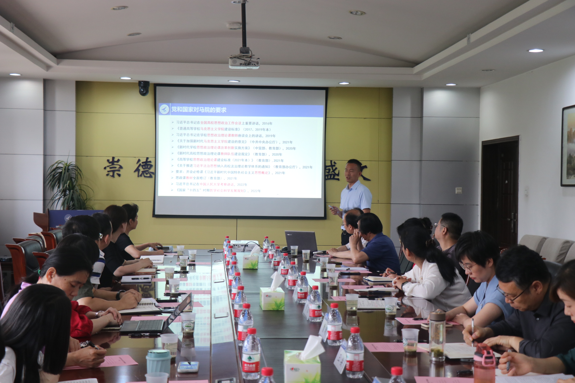 一行人的到来表示欢迎,侯俊介绍了此次调研的主要目的:加速推进一流本科人才培养行动计划和一流研究生人才培养行动计划,学习马院在思政教育、思政课程和课程思政同向同行建设方面的经验做法。蒲传新从师资队伍、思政课教学、学科建设等方面介绍了马克思主义学院整体情况,贺苗对目前马克思主义学院已经开展的思政课程及课程思政情况、取得的成效以及下一步举措做了详细的介绍。