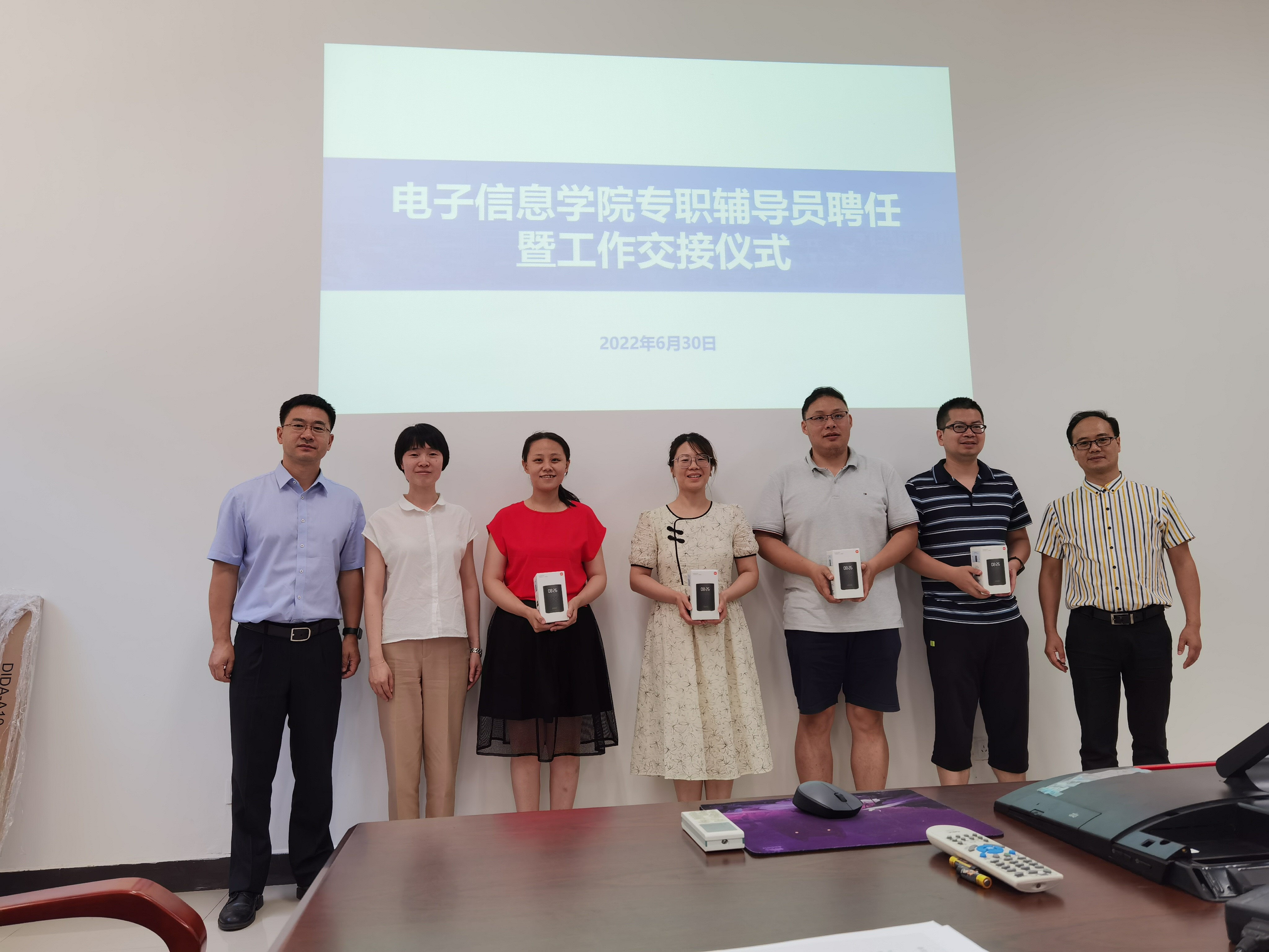 举行专职辅导员工作交接仪式。学院院长王伶、党委书记侯俊和全体专题辅导员参加仪式,会议由副书记高敏主持。