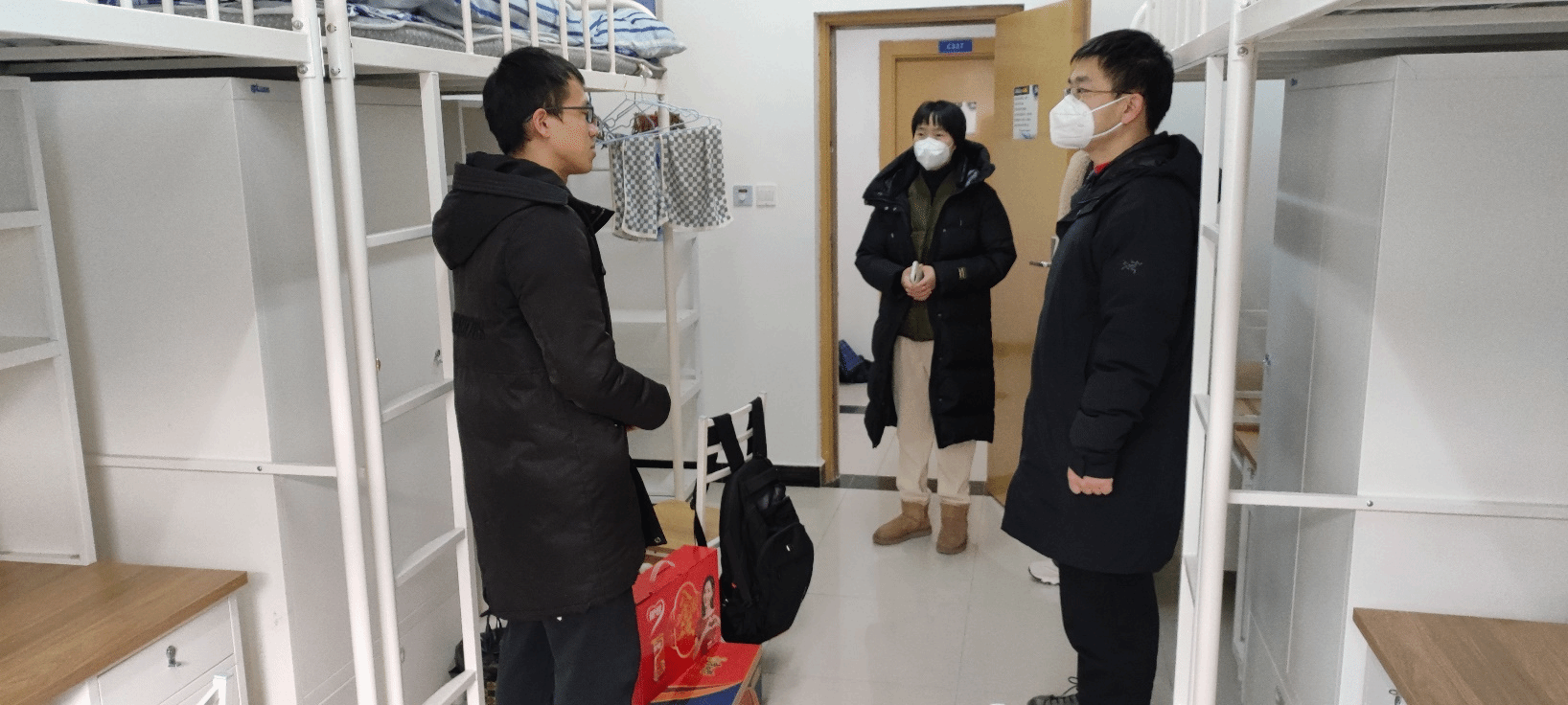 ,到海天苑1C和星天苑E座逐个走访并慰问了春节期间学院的留校学生,详细询问了每位同学的春节准备情况、近期的学习生活安排、当前的住宿和就餐等事宜,叮嘱同学们要关心关爱父母、与家人多联系、在学校度过一个有意义的春节,同时送上了学院精心准备的新春大礼包。同学们对学院领导的关心关怀表达了谢意,对学校寒假期间的住宿饮食保障也表示了感谢,同时表示将珍惜学校提供的良好环境认真完成学业。辅导员吴宝龙、刘向阳也参加了慰问活动。