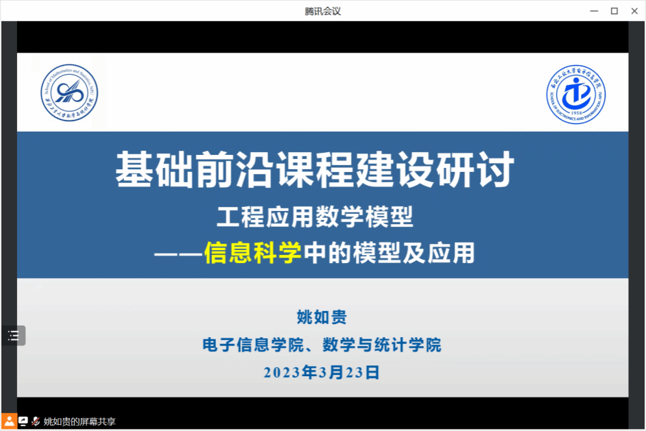 与数学与统计学院联合召开基础前沿课程《工程应用数学模型——信息科学中的模型及应用》建设研讨会议。数学类基础交叉前沿课程负责人、《工程应用数学模型》课程群负责人、《工程应用数学模型——信息科学中的模型及应用》课程负责人及授课教师等参加了会议。会议由动漫在线