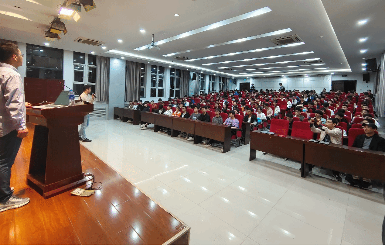 近日,学院2016届本科和2019届硕士生校友、新加坡国立大学王世雄博士回到母校为大一、大二本科生带来一场精彩的学业经验分享。学院院长助理秦雨潇、系统与控制工程系副教授何建华、大一、大二年级辅导员刘向阳、翟伟乐、吴宝龙参与了此次活动。活动在自动化报告厅举行,全场座无虚席,甚至在走廊“加座”,现场交流氛围热烈。