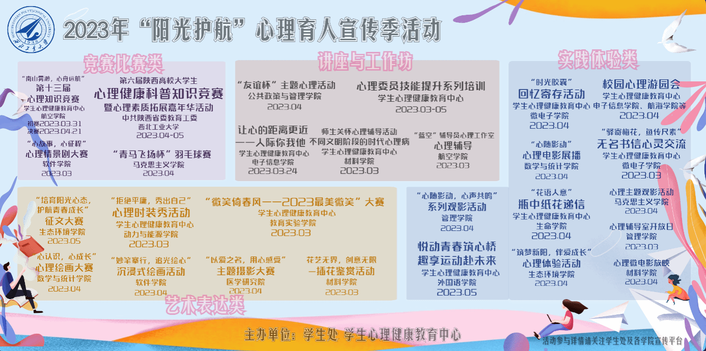 2023年“阳光护航心征程 青春启航梦飞扬”心理育人宣传季启动仪式在长安校区举办。本次启动仪式由学生心理健康教育中心主办,动漫在线