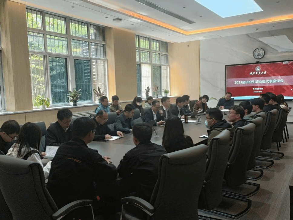 在119会议室召开2023届研究生毕业生代表座谈会。院长王伶,党委书记侯俊、党委副书记高敏、副院长姚如贵、高永胜、各系主任、研究生教学秘书和毕业年级辅导员出席会议。会议由高敏主持。