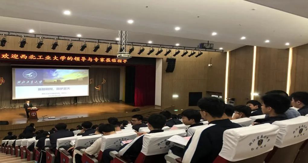 授牌仪式结束后,航空学院副院长万方义为奉化中学700多名高一学生做了《振翅翱翔,圆梦蓝天》的科普讲座。万院长从什么是飞机、飞机为什么会飞、航空科技发展、中国的大飞机历程、飞机设计师的摇篮-西工大等方面,详细解读了中国航空事业曲折的发展历程,引导同学们热爱科学、献身航空的兴趣。在讲述过程中增加提问互动环节,同学们踊跃回答问题,表现出对航空、对西工大的浓厚兴趣。
