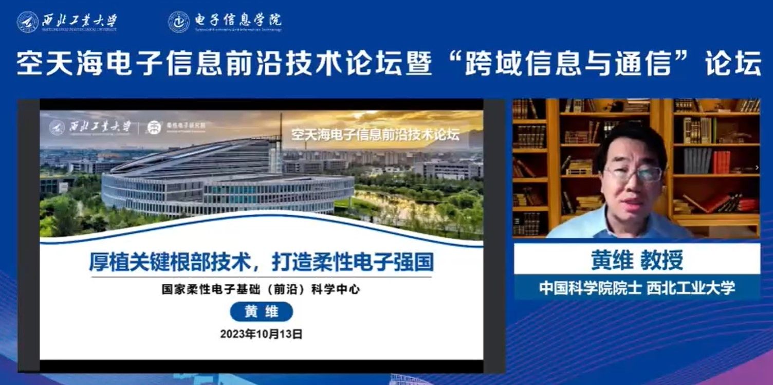 黄维通过线上方式作题为“厚植关键根部技术,打造柔性电子强国”的报告,从颠覆性创新决定国家未来、柔性电子引领高质量发展、创新团队与近期研发成果和柔性电子产业机遇与挑战四个方面进行了阐述,并指出柔性电子领域要围绕“四个面向”,加快自主创新步伐。