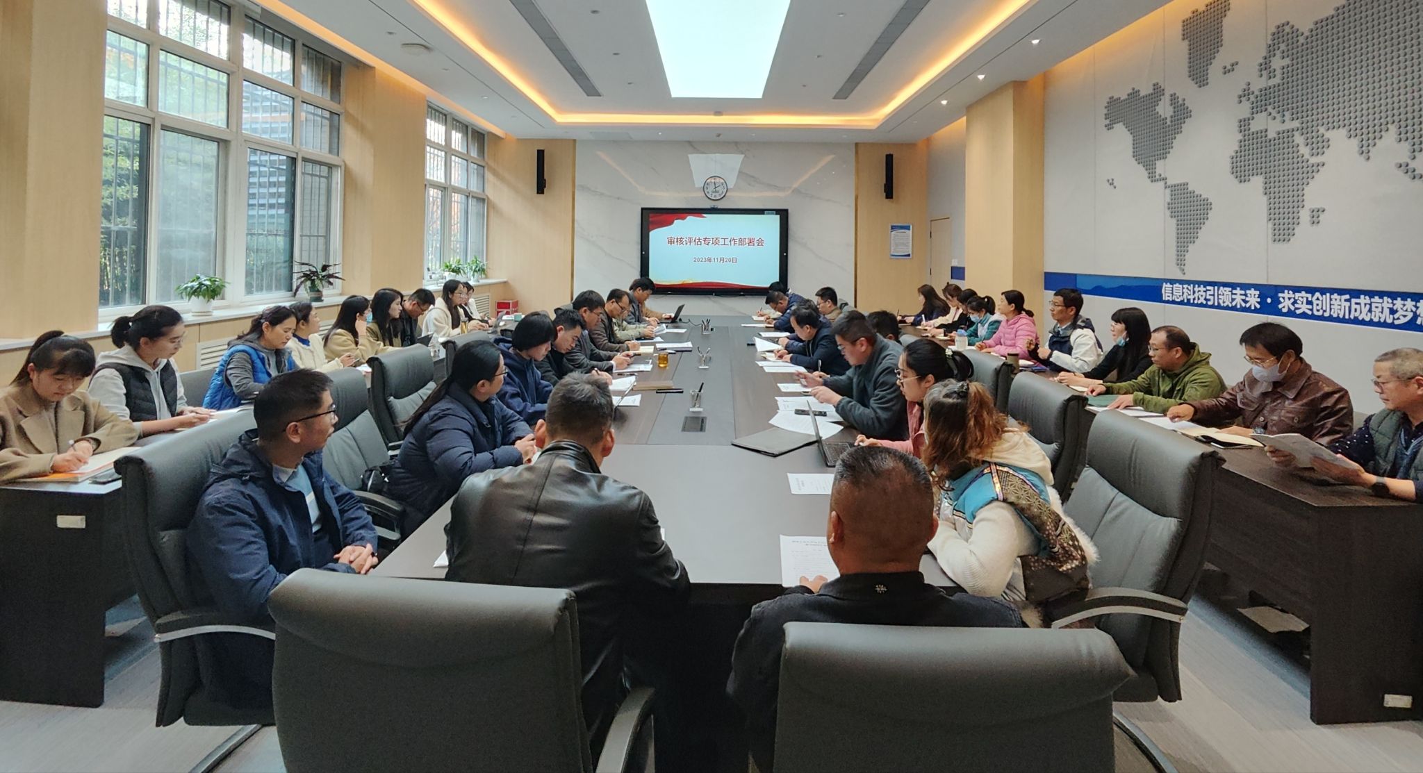 首先,高永胜汇报了线上评估以来的工作进展、专家线下入校迎评工作准备情况、及专家线下考察迎评工作分工,确保参会老师深刻领会、准确把握评估要素的内涵要求。接下来,参会老师围绕专家听课、档案调阅、线下访谈等方面进行了深入交流。