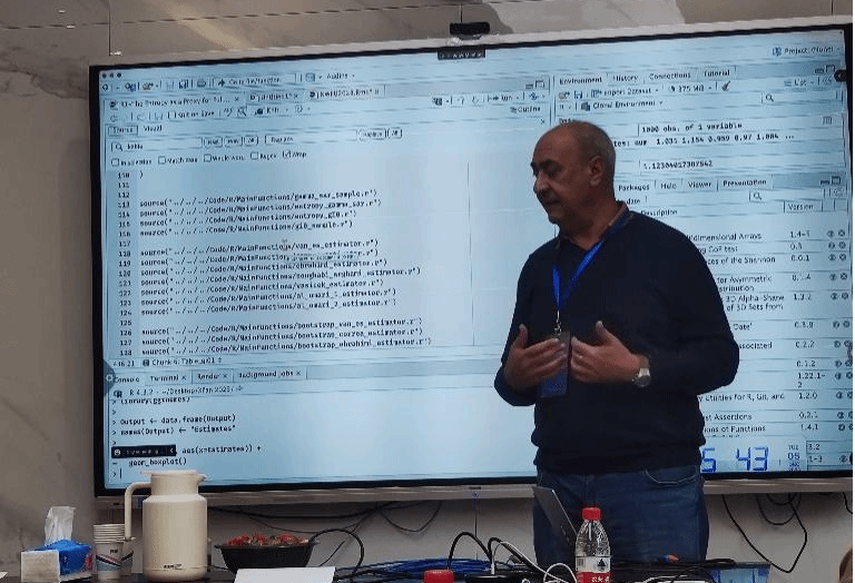 随后,Alejandro C. Frery教授做了题为《Reproducibility and Replicability - Concepts and Tools》的专题报告。首先,他阐述了一篇文章从构思到形成最终论文的整个流程和逻辑,说明了一篇学术论文的各个组成部分及其内容的写作方法,并由此出发,充分对比了会议论文和期刊论文的异同点,详细阐释了如何将一篇会议论文转化为期刊论文和该过程中应当注意的细节。接着,Alejandro C. Frery教授详细阐述了可复现性在当前论文发表中的重要性。随后,Alejandro C. Frery教授基于R编程语言和RStudio软件,给各位师生现场演示了如何使用R Markdown来进行科研图表绘制和论文的排版。报告结束后,参会师生就各自的科研情况与报告相关的部分展开了热烈的讨论,Alejandro C. Frery教授就师生的提问做了详细的回复。梅少辉教授就论文构思、英文论文写作技巧和论文写作软件应用等内容与Alejandro C. Frery教授展开了深入的研讨交流。最后,Alejandro C. Frery教授鼓励参会学生要多思考、多尝试、多交流,才能科研实践中锻炼自己的综合能力。