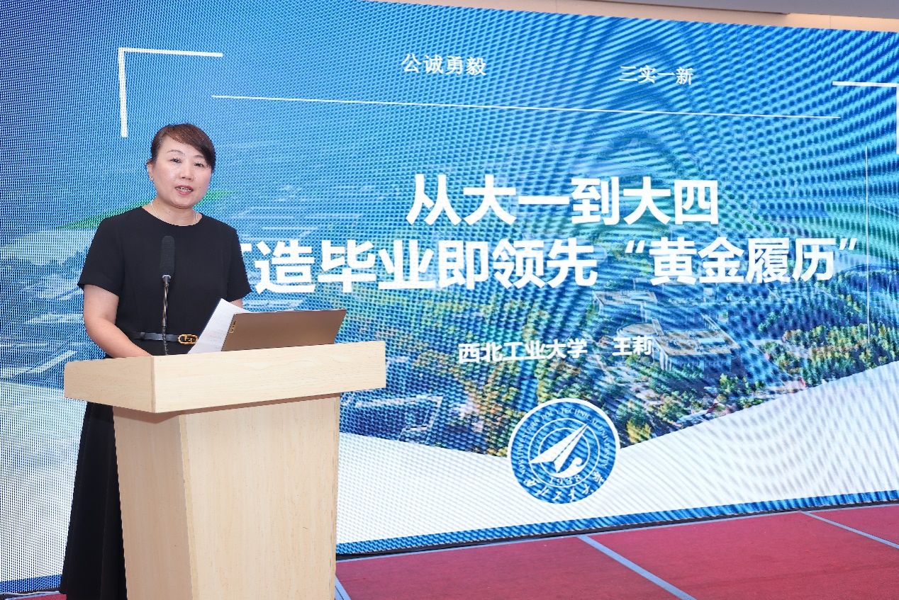 王莉以“从大一到大四,打造毕业即领先‘黄金履历’”为题,通过西工大浙江生源学子的真实案例,向与会家长和学生分享了大学生从学业规划、科研实践到职业发展的成长轨迹,全方位展示了西工大“总师型”人才培养体系的育人成果。